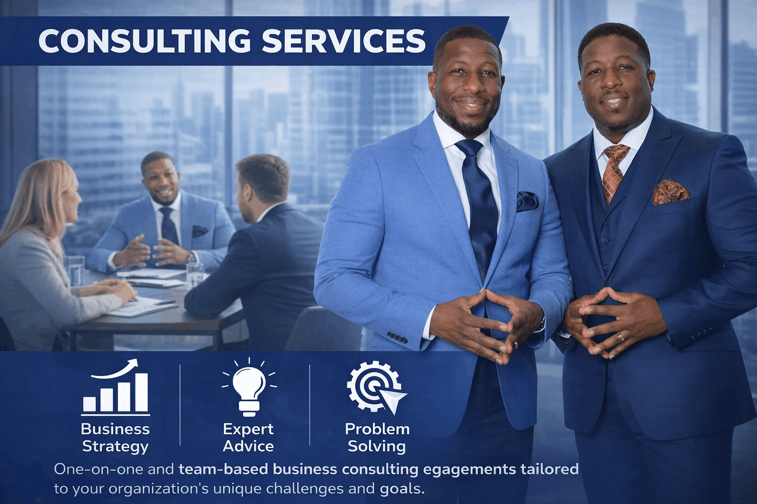 One-on-one and team-based business consulting engagements tailored to your organization's unique challenges and goals.